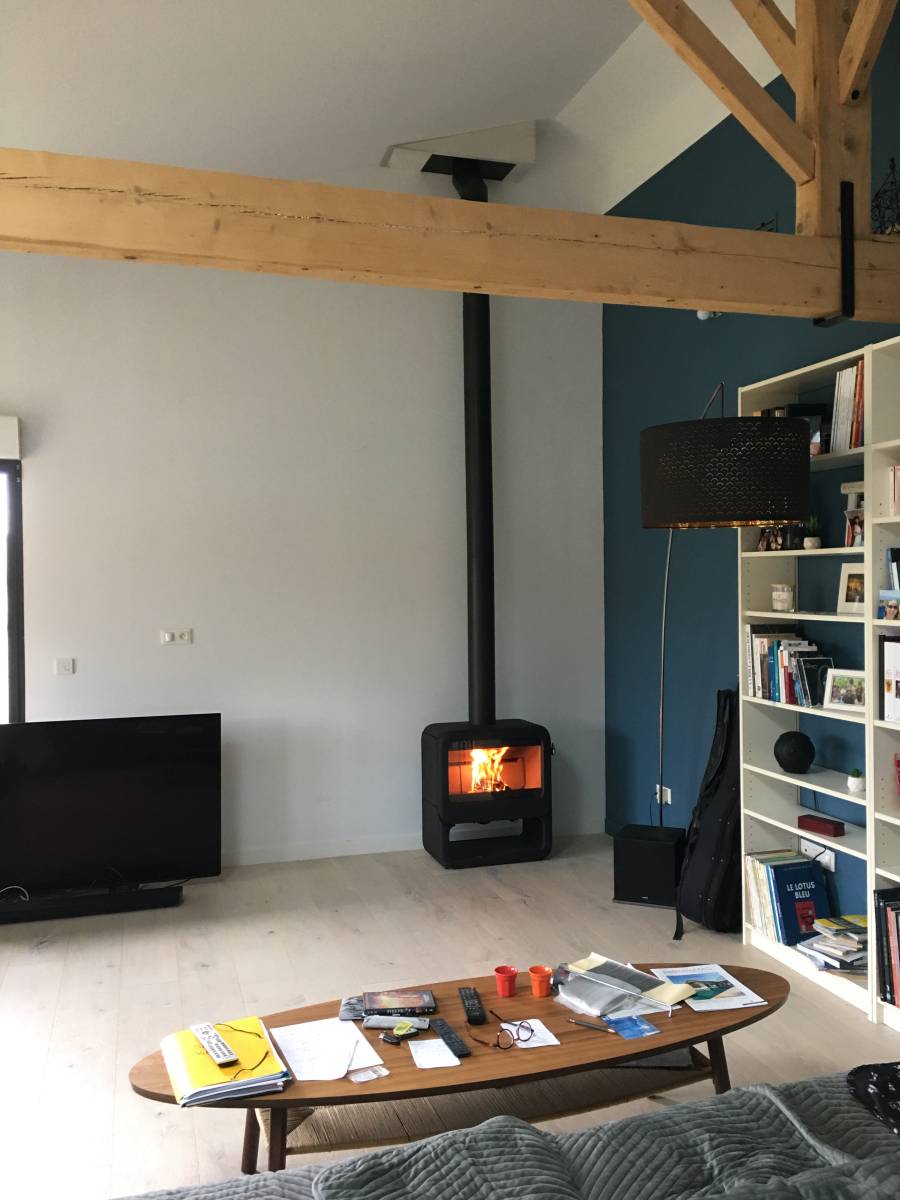 Pose d’un poêle à bois en fonte de marque Dovre et création d’un conduit isolé sur Aix-en-Provence
