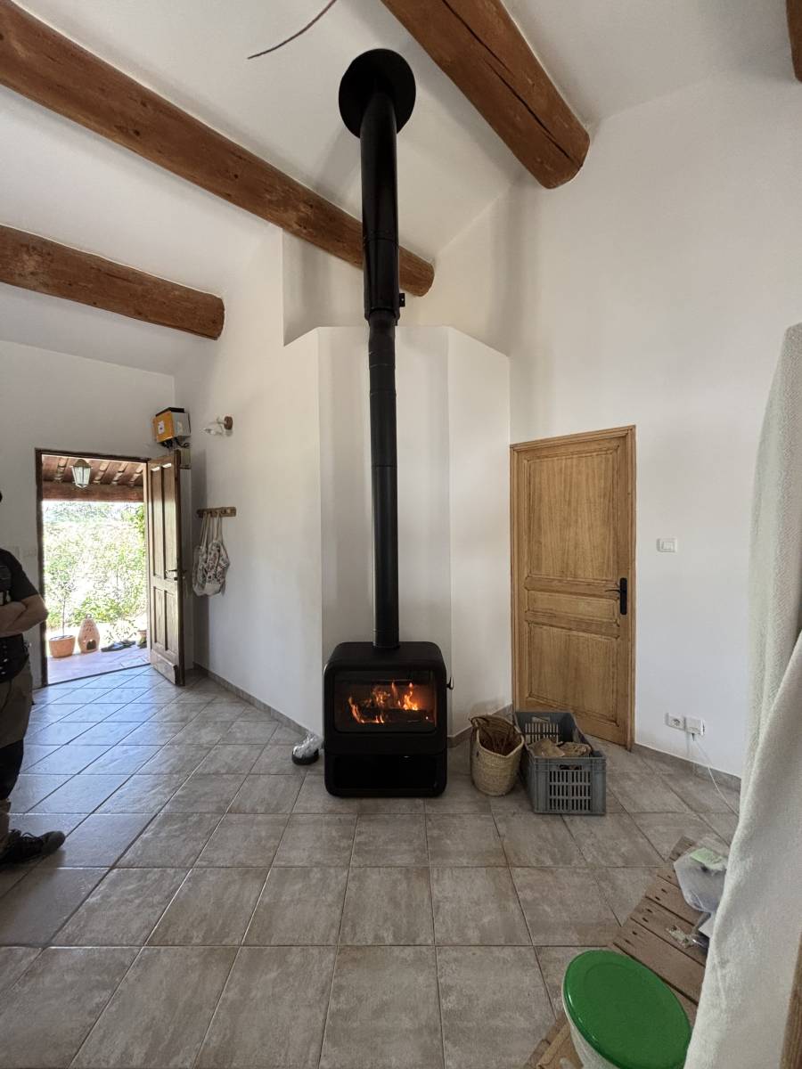 Pose d’un poêle à bois DOVRE ROCK 500 et création d’un conduit de fumées isolé sur Le Puy-sSainte-Réparade