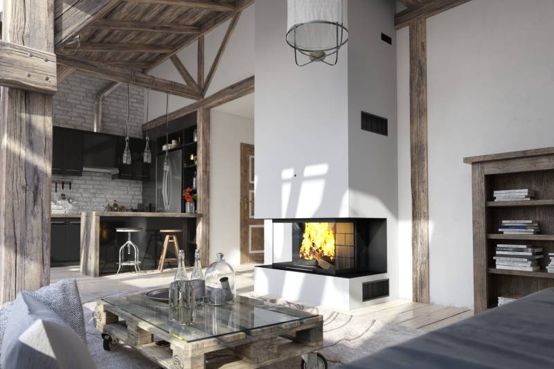 Des foyers de cheminées multifaces avec des rendement supérieur à 77% (5 fois plus de rendement qu’une cheminée ouverte). Ces foyers sont équipés d’une porte 100% escamotable, avec des commandes d’air intégré, une triple combustion qui améliore le rendement et réduit l’émissions des particules, un système de vitre propre et étanche.